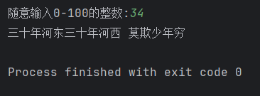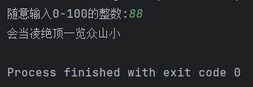 随意输入0-100的整数,如果大于60 就在控制台返回 会当凌绝顶一览众山小 如果小于60就返回 三十年河东三十年河西 莫欺少年穷
