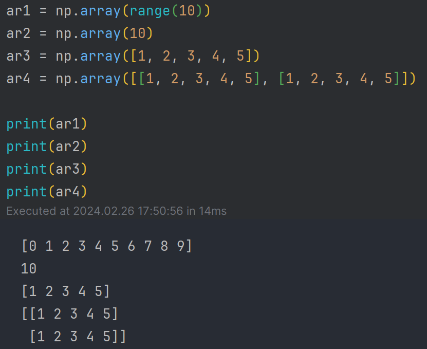 print(b)这会创建一个包含0到4的整数的一维数组。