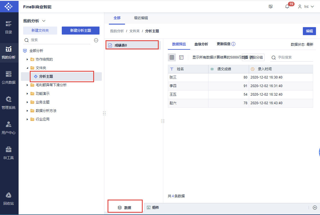 在进行数据分析前,需要创建分析主题,在分析主题中,可以添加数据,用户进一步的分析。
