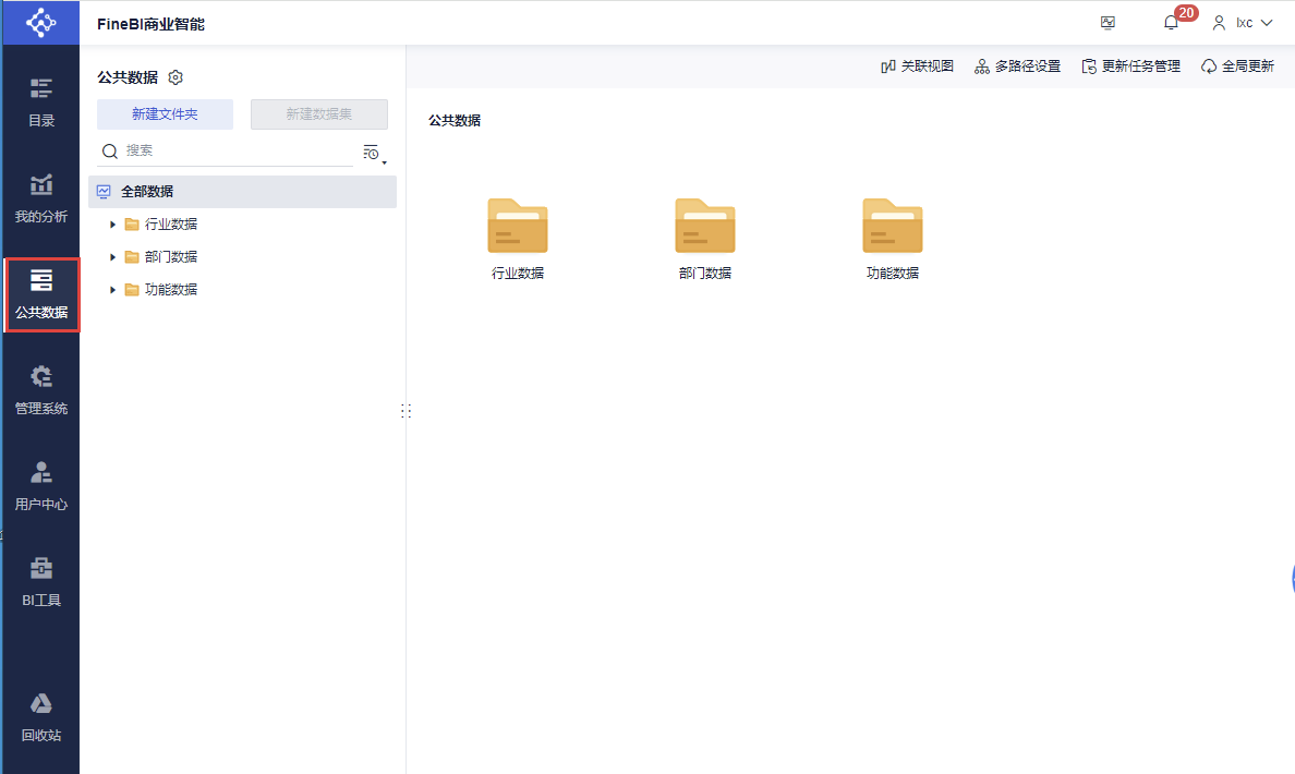 - 数据分类,FineBI 以文件夹的形式进行数据管理,让用户可以根据不同的业务包主题进行数据的分类。提供了数据相关的各种信息,让用户更好的了解自己所拥有的数据。