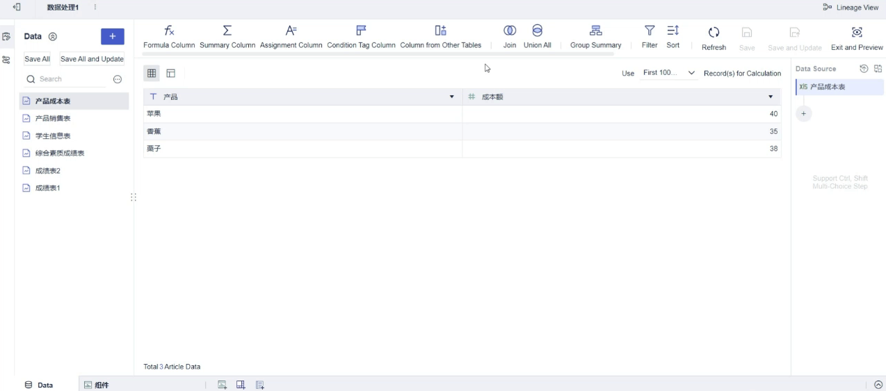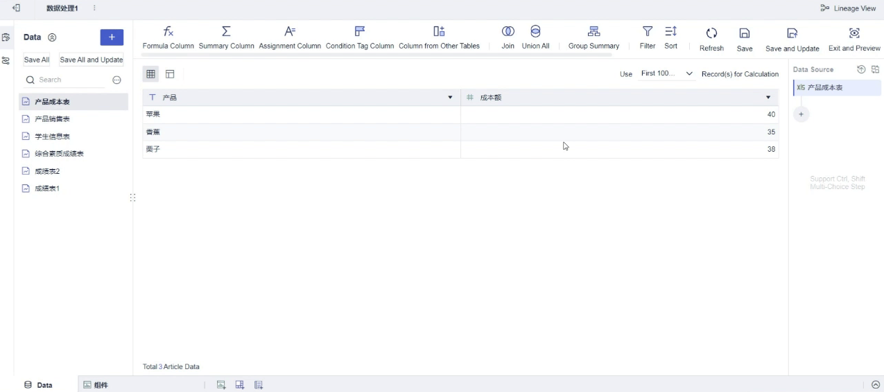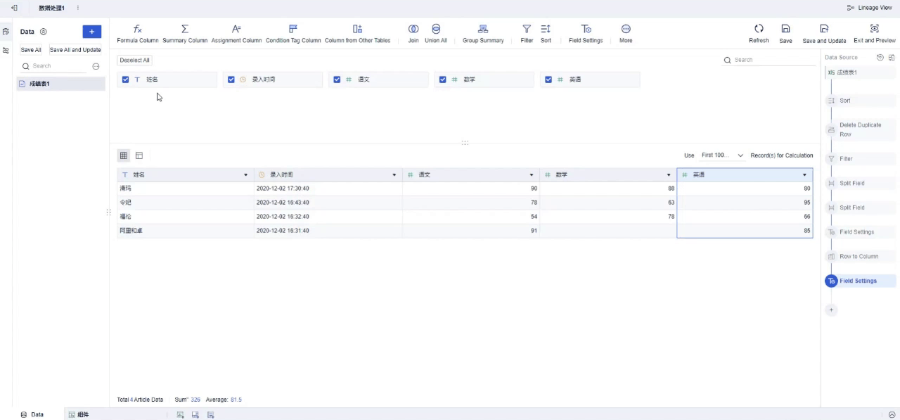 通过字段设置,可以选择需要保留或排除的字段,快速调整字段位置、重命名字段,从而快速整理数据。