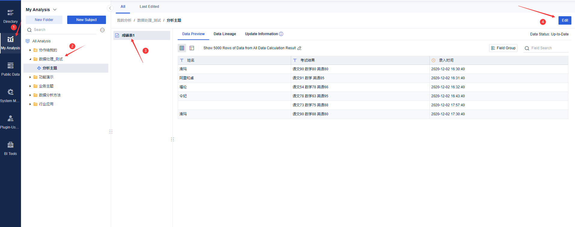 成绩表1.xls的数据并创建新的分析主题 - 修改分析主题名称