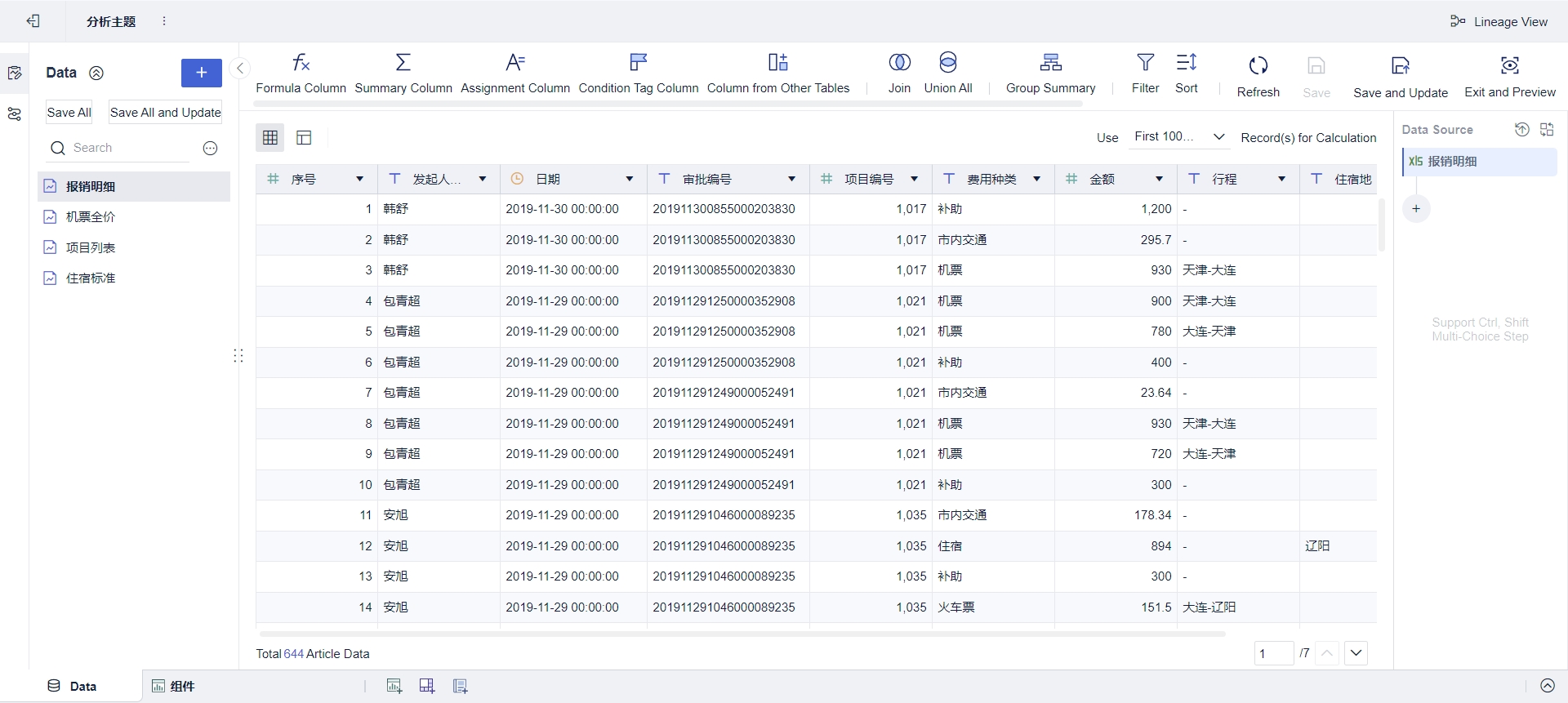 已知数据表报销明细,机票全价,项目列表和住宿标准,对他们汇总对旅程价格进行分析,基于结果发现问题和给出决策建议