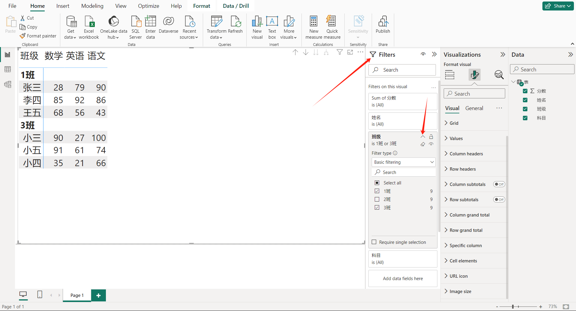 点击筛选器,点开需要筛选的视觉对象,即可筛选