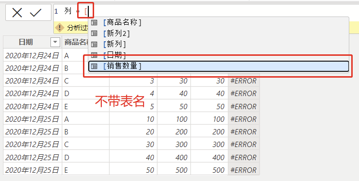新增列:英文的 ‘ 号 或 [ 都可以新增列进行计算 效果是相同的