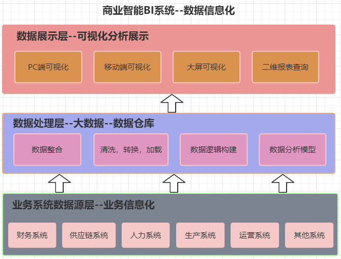 商务智能BI可以实现业务流程和业务数据的规范化、流程化、标准化,打通ERP、OA、CRM等不同业务信息系统,整合纳企业数据,利用数据可视化满足企业不同人群对数据查询、分析和探索的需求,从而为管理和业务提供数据依据和决策支持。