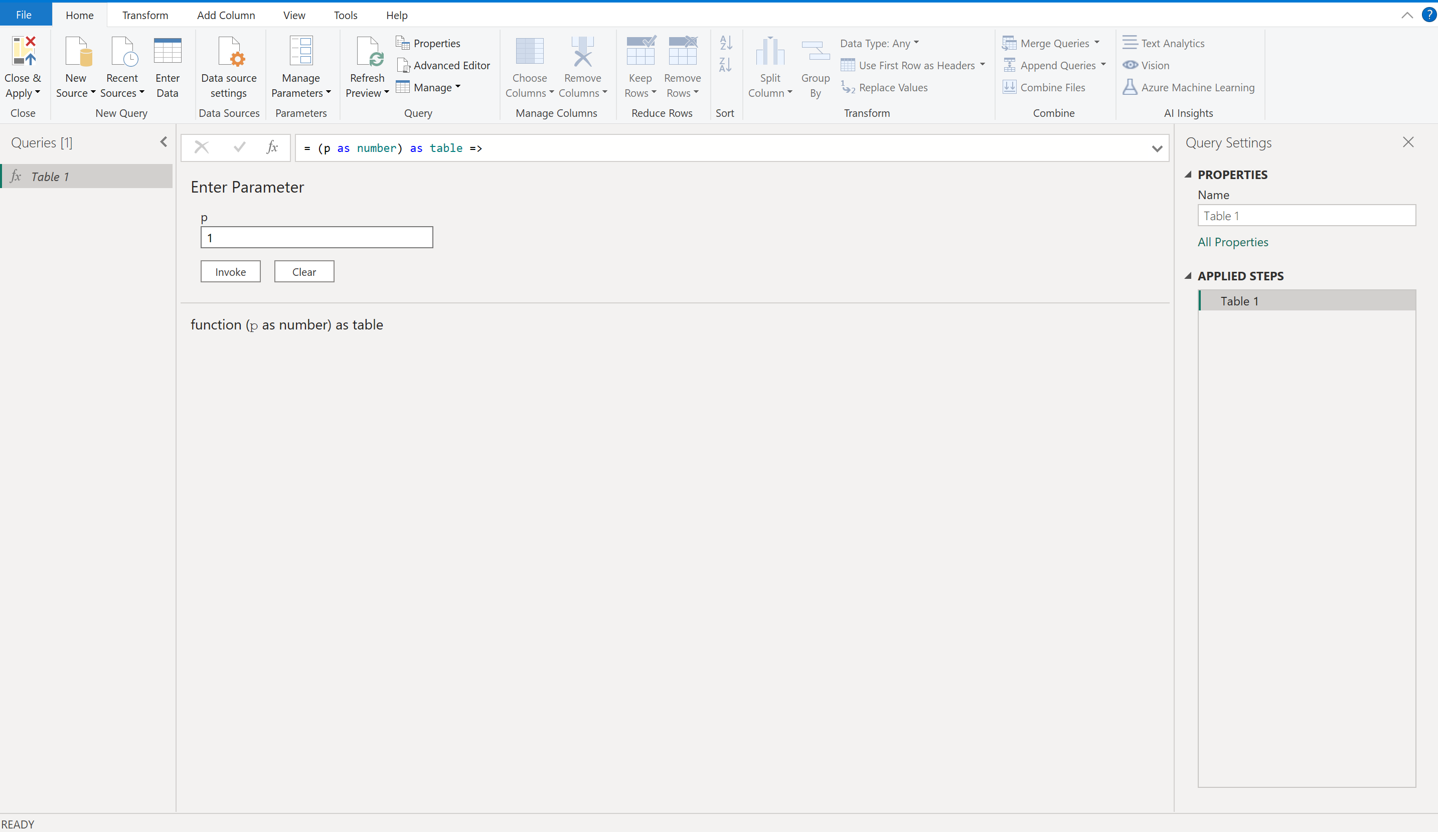 定义数字变量P `(p as number) as table =>``