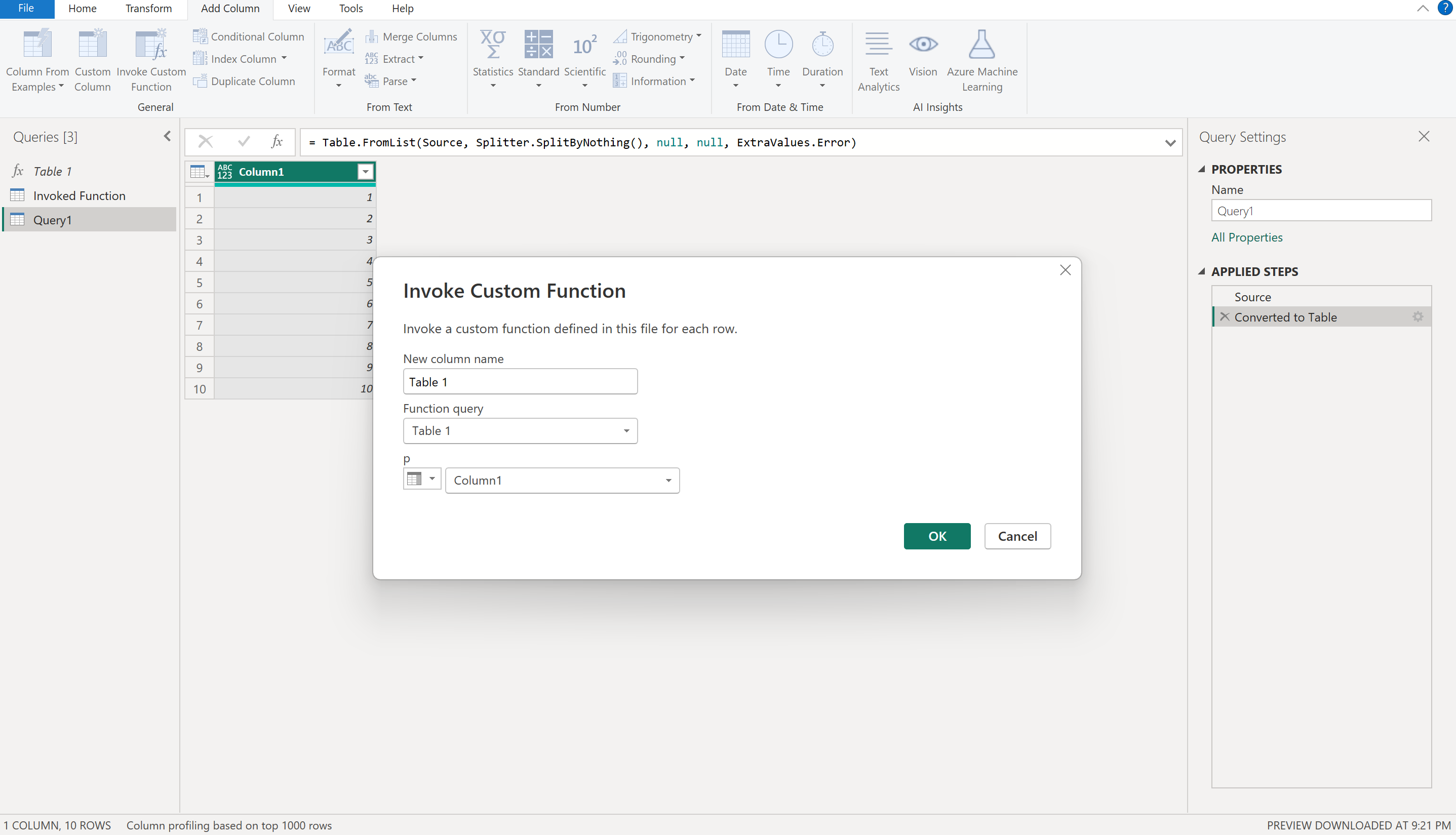 这样我们就建立好了一个查询,待会p的参数就会从我们创建好的Column1这个函数里去调用