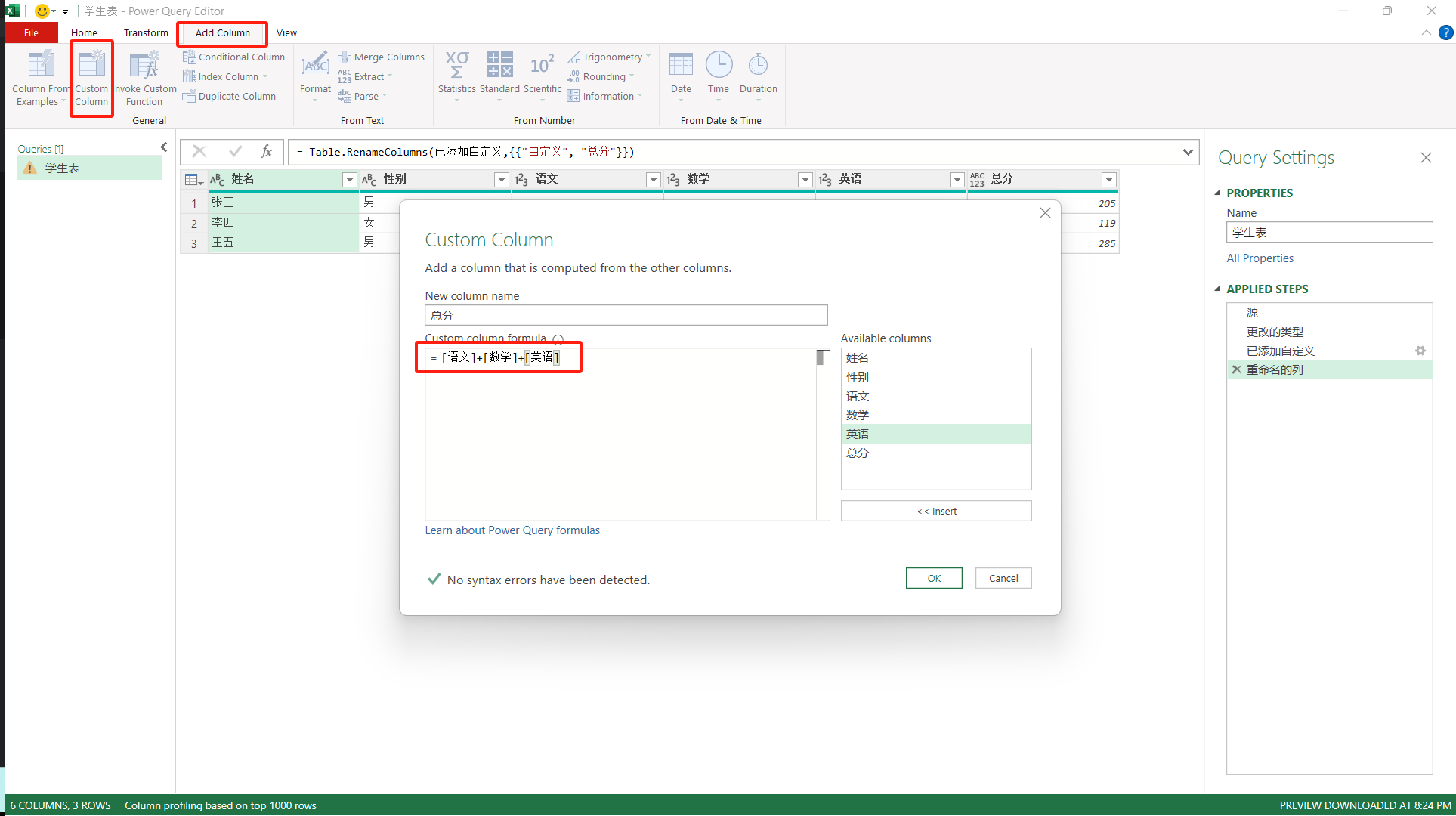 添加自定义列