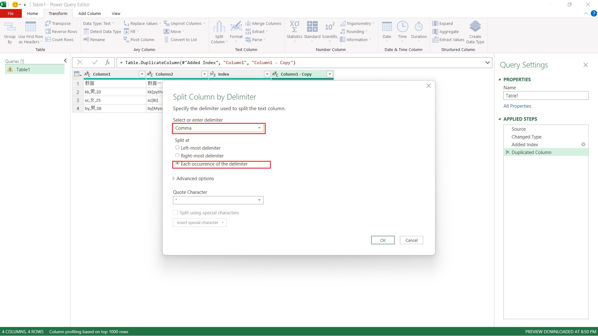 索引列,重复列,拆分,提取