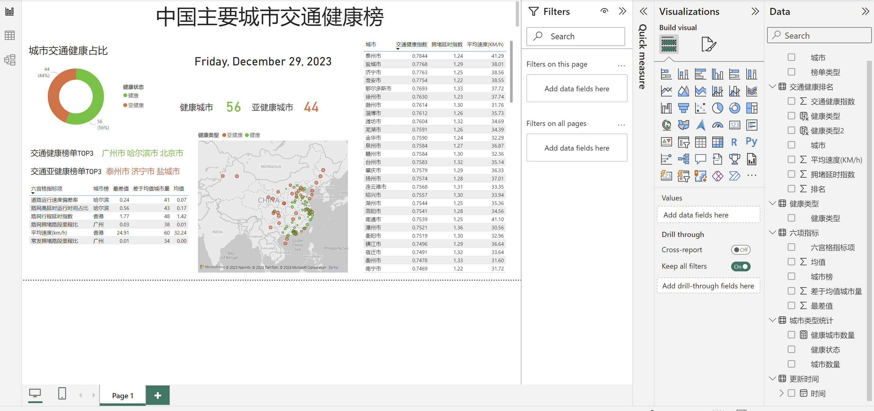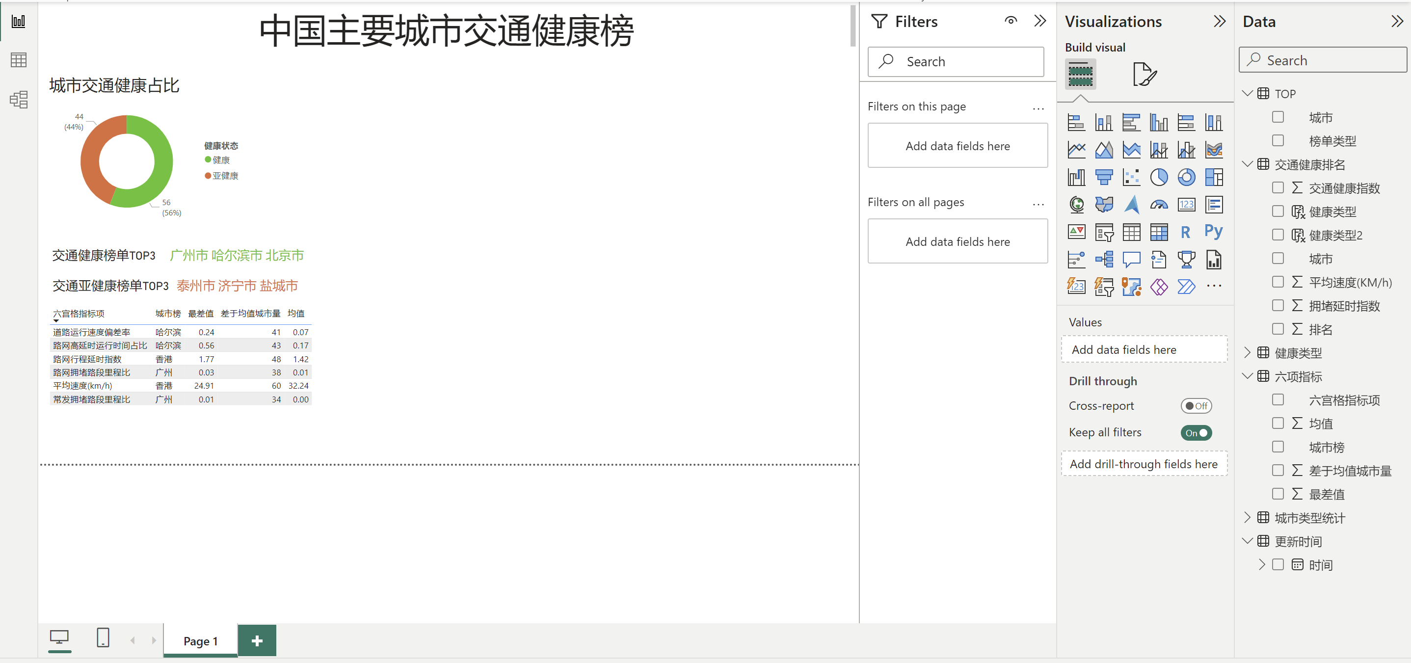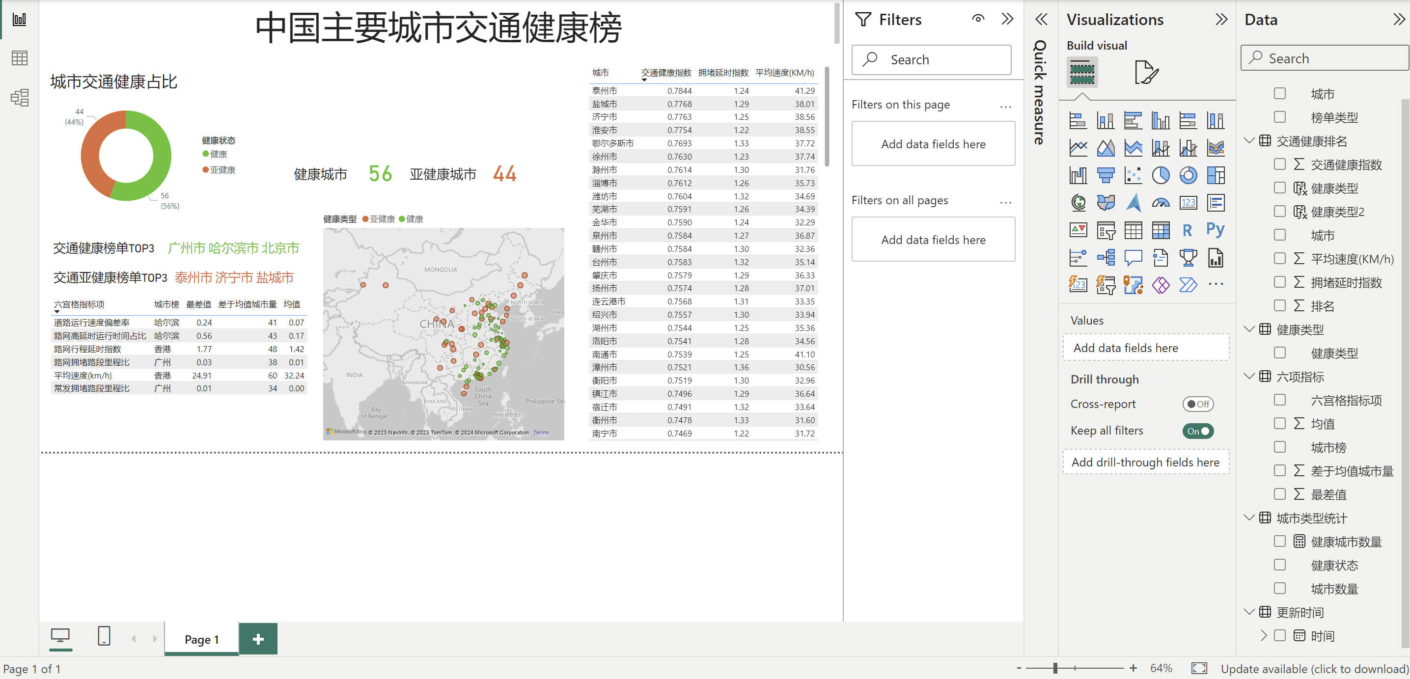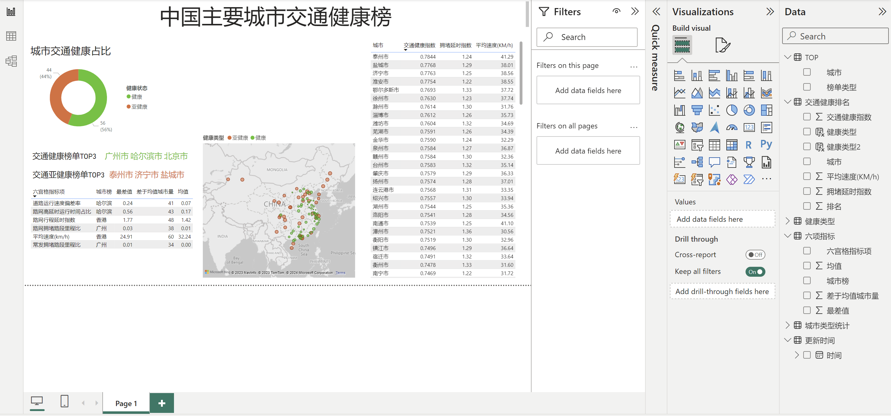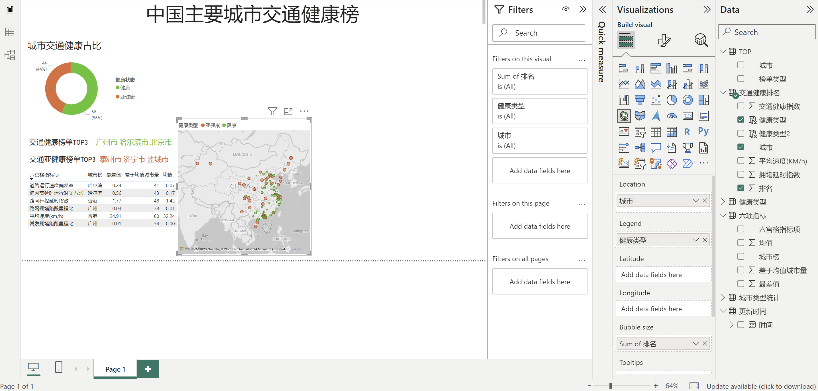 健康类型2 = IF('交通健康排名'[排名]<=56,"健康","亚健康")(硬编码56)