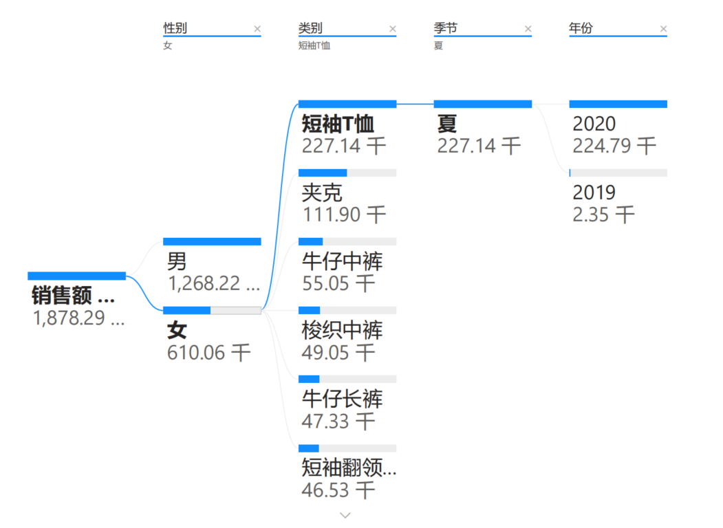 应用创景:适用于展示数据之间的层级和占比关系。(钻取和上卷)