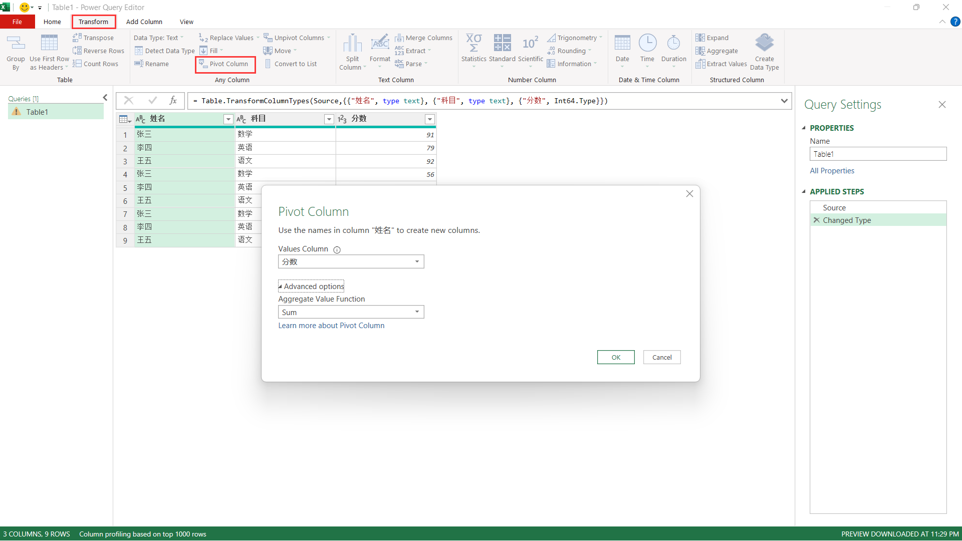 - 透视列:将列数据转换为行格式,与透视相反。