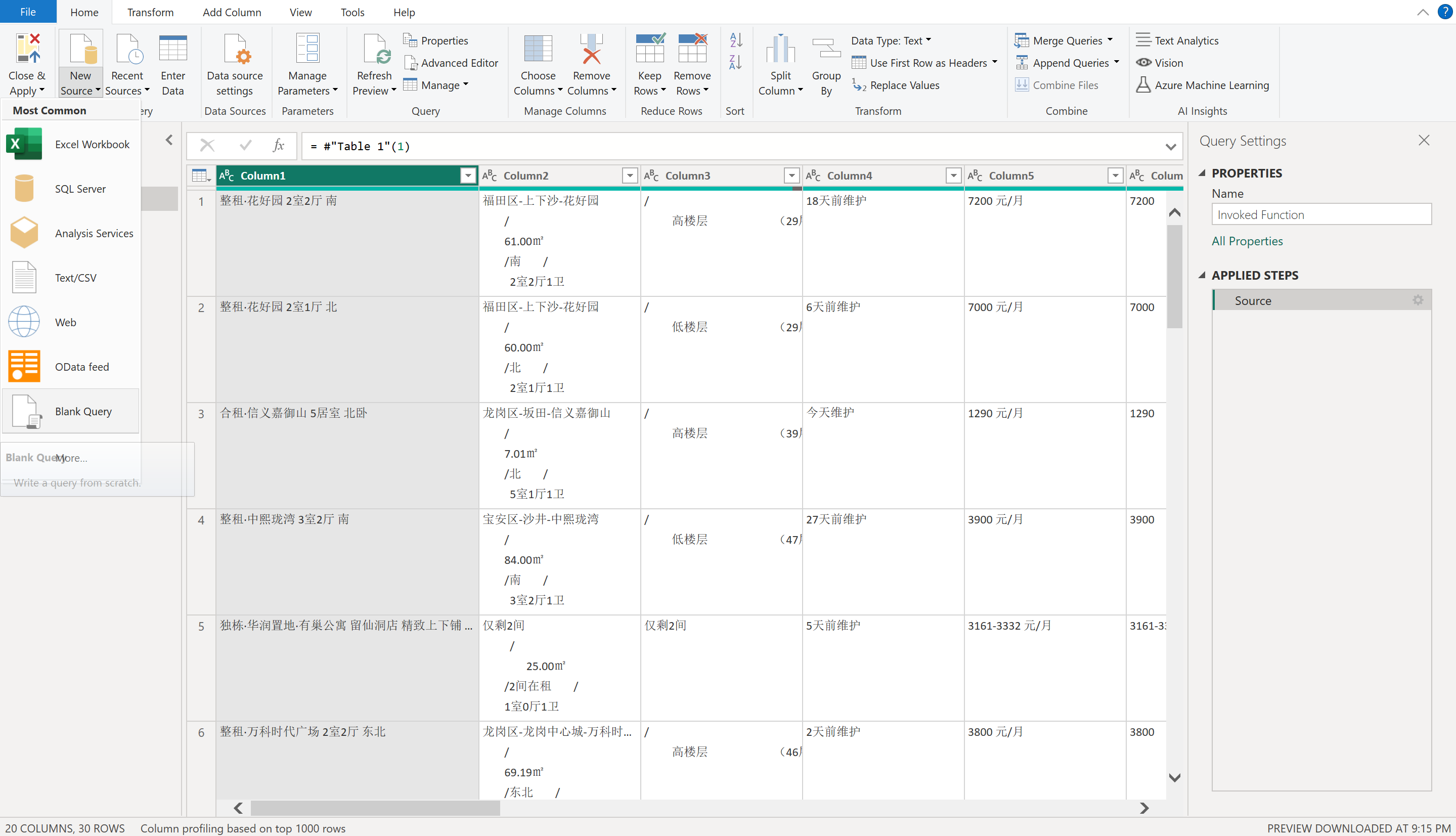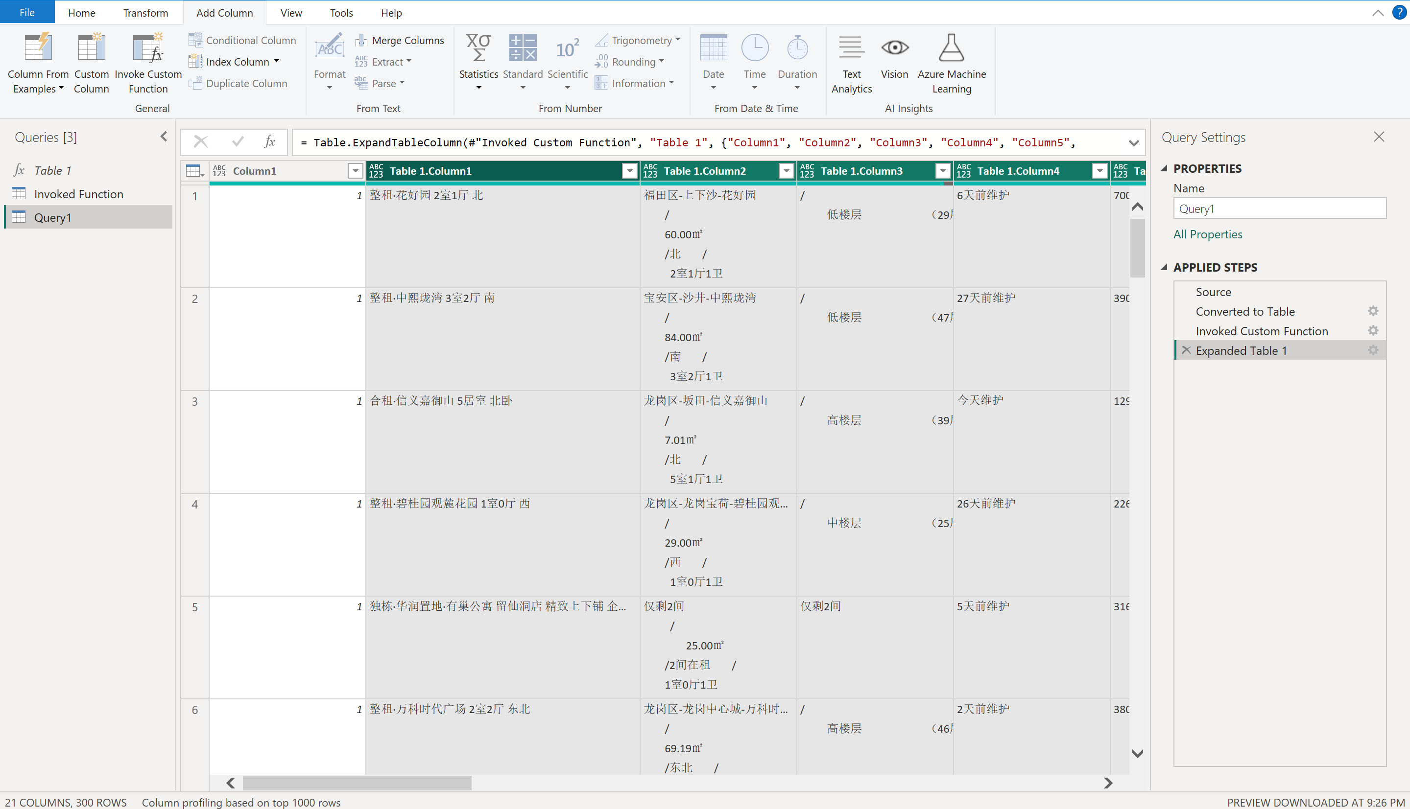 添加列–调用自定义函数–功能查询/选择贝壳P/选择我们刚刚生成的Column1