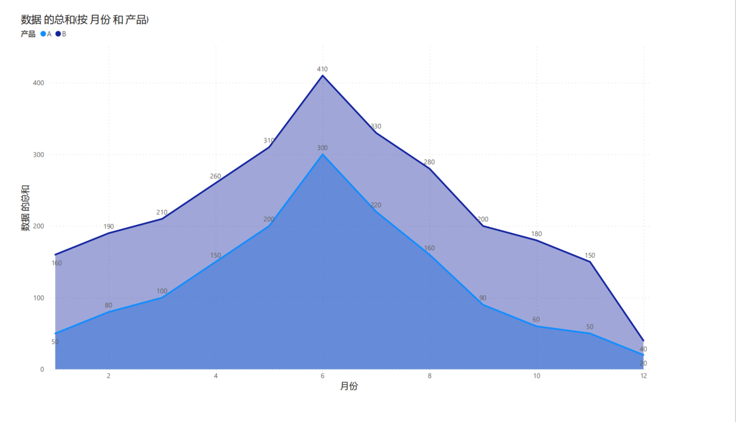 概念:什么是分区图呢?分区图又称面积图,它着重强调数量随时间而变化的程度,也可用于引起人们对总值趋势的注意并清晰展现数据的增减趋势、增减的速度、增减的规律、峰值等特征等。此外,堆积面积图还可以显示部分与整体的关系。面积图包含图表区、标题、绘图区、图例、坐标轴、坐标轴标题、网格线、数据标签、数据系列(区域)等元素,广泛运用于各行各业,比如销售金额增幅,客流量统计等。