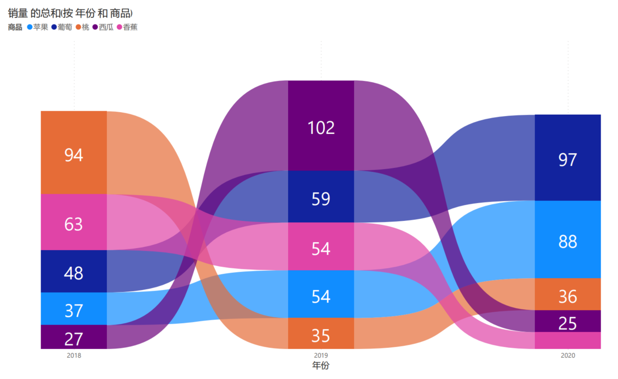 概念: 可创建功能区图表来直观显示数据,并快速发现哪个数据类别具有最高排名(最大值)。 功能区图表能够高效地显示排名变化,并且会在每个时间段内始终将最高排名(值)显示在最顶部。