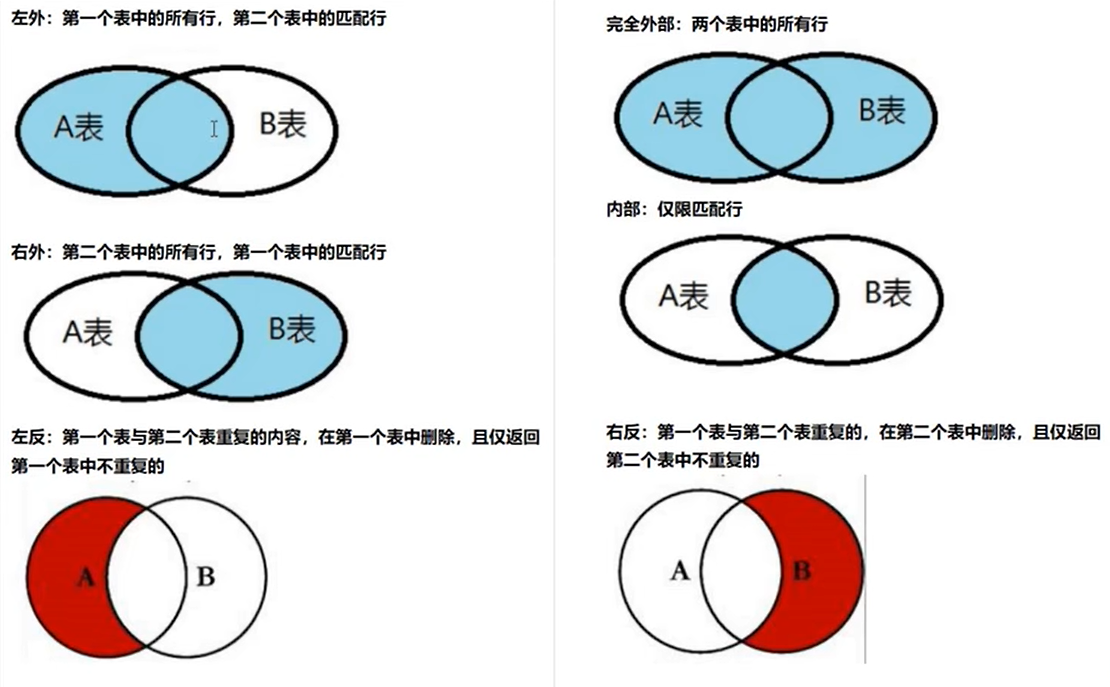 - 右反合并:只包括右表中独有的行。