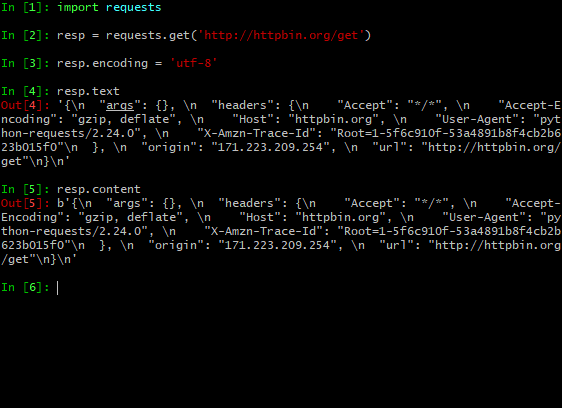 Requests会自动的根据响应的报头来猜测网页的编码是什么,然后根据猜测的编码来解码网页内容,基本上大部分的网页都能够正确的被解码。而如果发现text解码不正确的时候,就需要我们自己手动的去指定解码的编码格式。而如果需要获得原始的二进制数据,那么使用content属性即可。