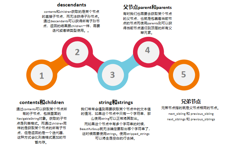 首先,一个节点中是可以包含多个子节点和多个字符串的。例如html节点中包含着head和body节点。所以BeautifulSoup就可以将一个HTML的网页用这样一层层嵌套的节点来进行表示。