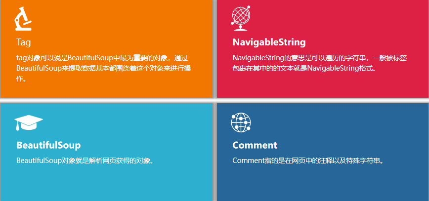tag对象可以说是BeautifulSoup中最为重要的对象,通过BeautifulSoup来提取数据基本都围绕着这个对象来进行操作。