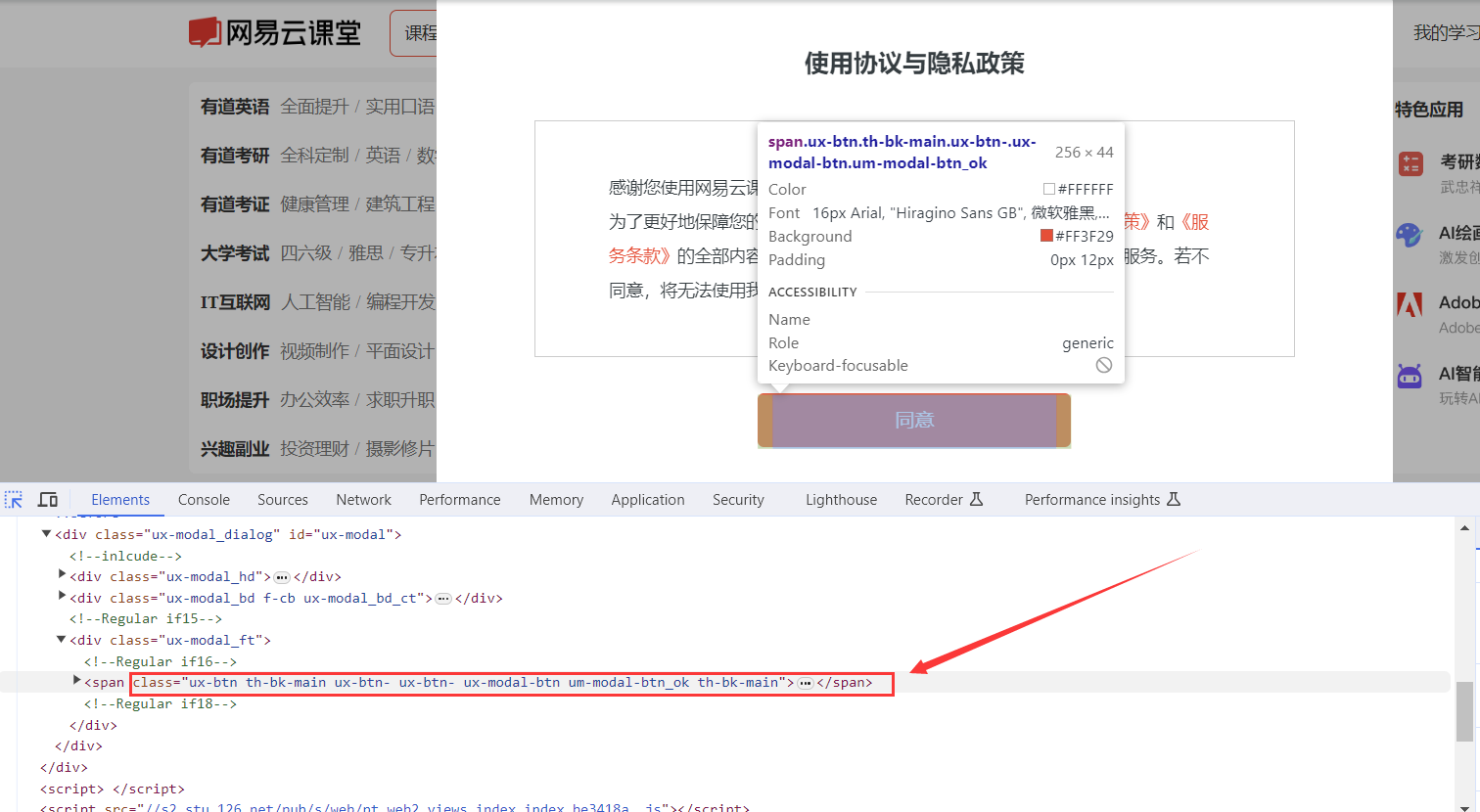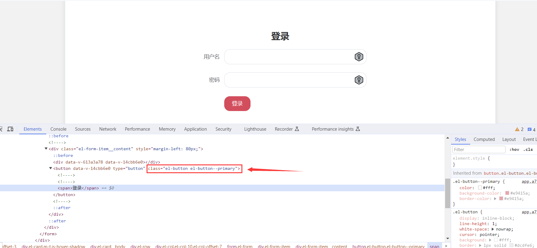 通过查看登录按钮的元素,发现其父级类为el-button,确定登录对象