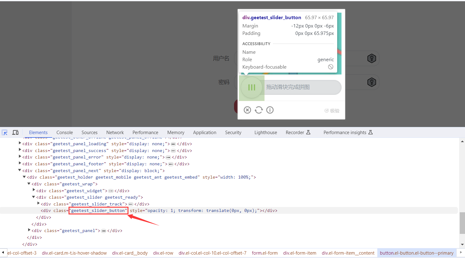 通过查看滑块元素,确定滑块对象geetest_slider_button