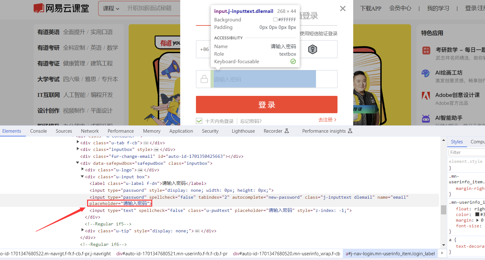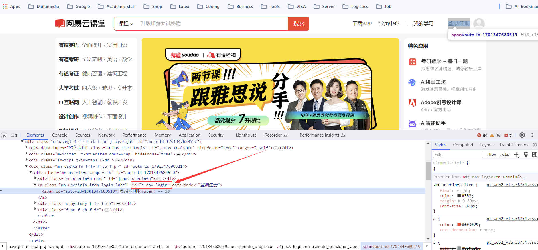 由于登录的元素后续跟随有时间戳auto-id-1701347680519,因此选用同样是id的id="j-nav-login",保持唯一性