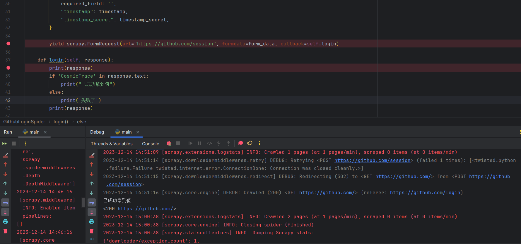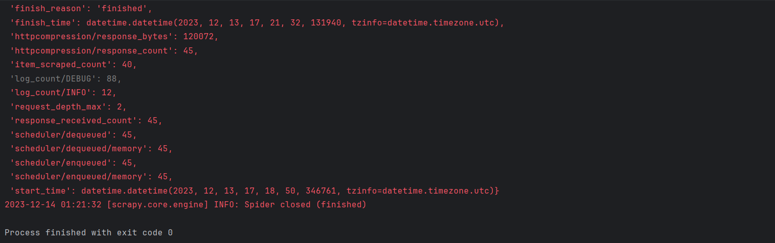 - 当所有预定的URL都被爬取,且调度器中没有更多的请求时,Scrapy关闭,爬取过程结束。