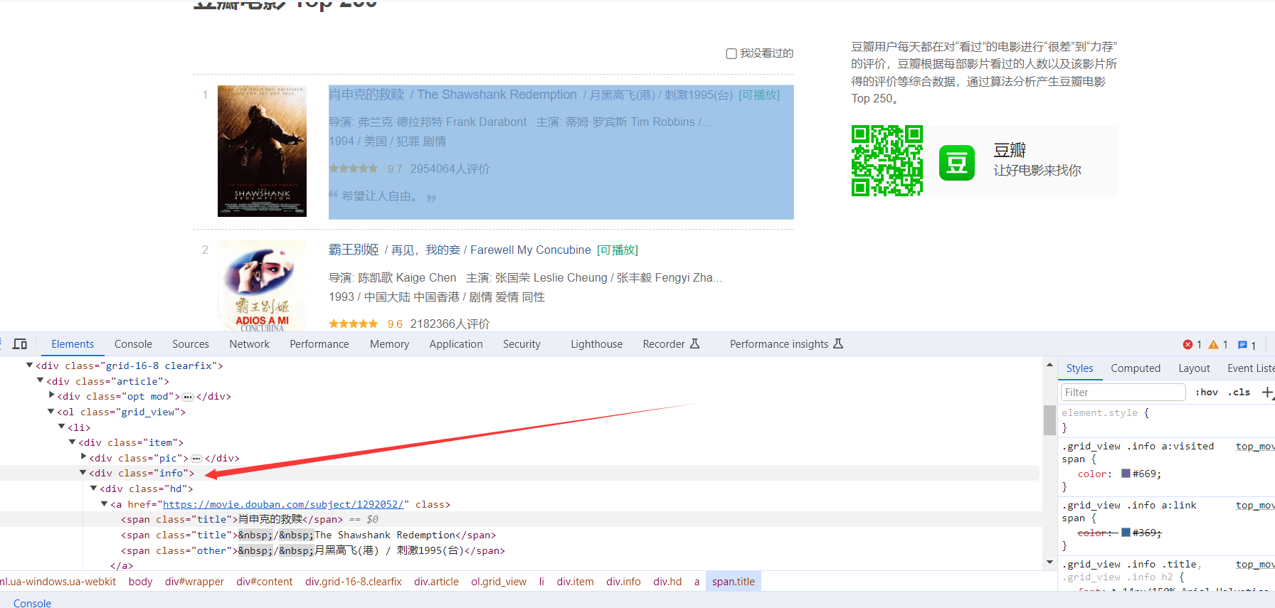 目标是创建一个 Scrapy 爬虫来爬取豆瓣电影的前 250 个电影信息。这些信息包括: