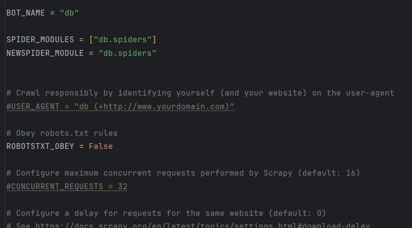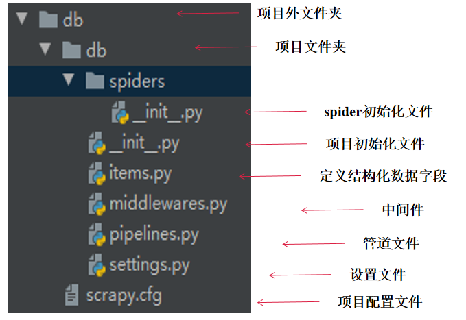 scrapy startproject db会创建一个名为 ‘db’ 的Scrapy项目。