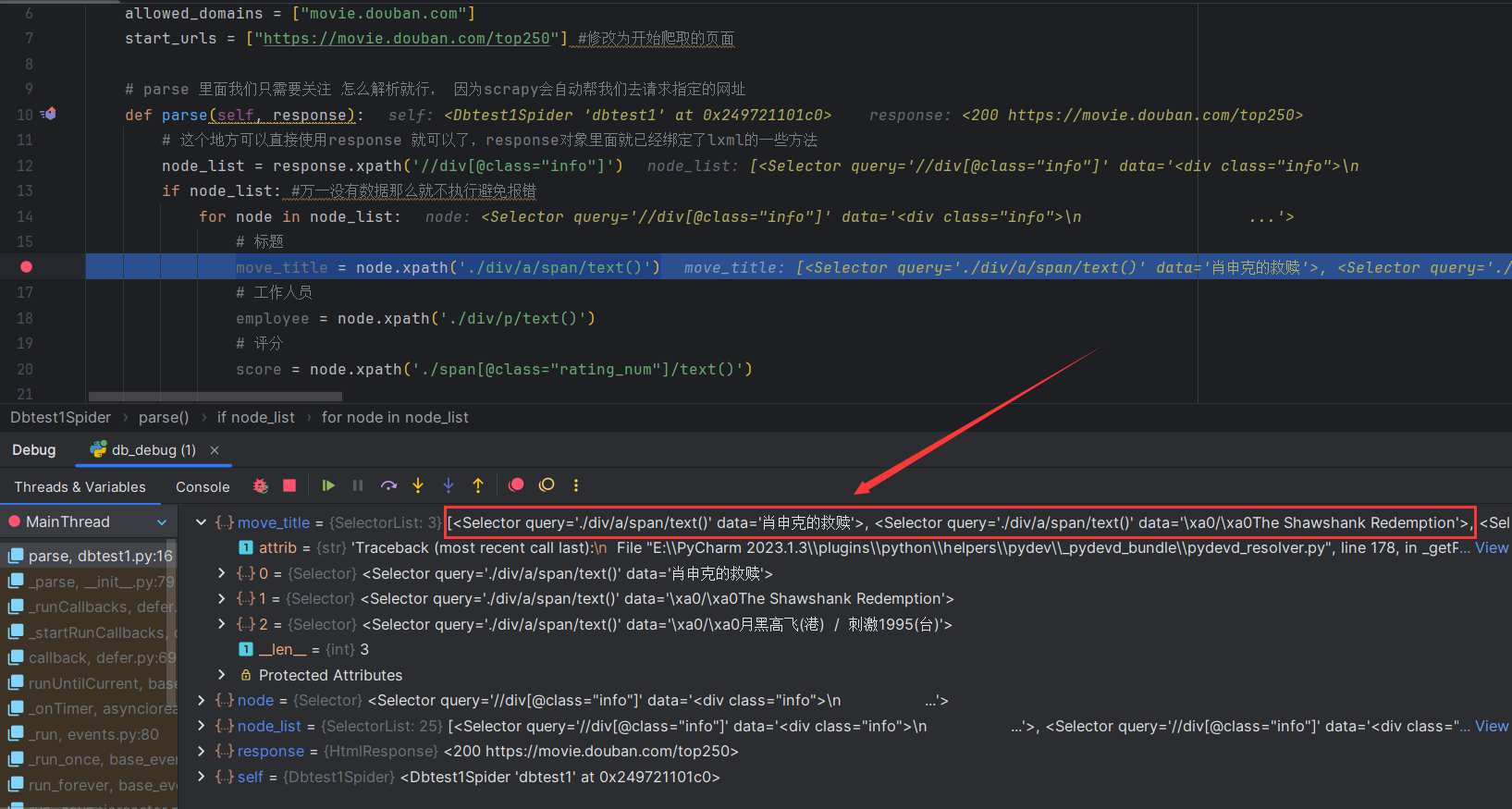 start_urls = ["https://movie.douban.com/top250"] #初始页面,第一个抓取的页面,放在产生请求的地方也就是在爬虫部件