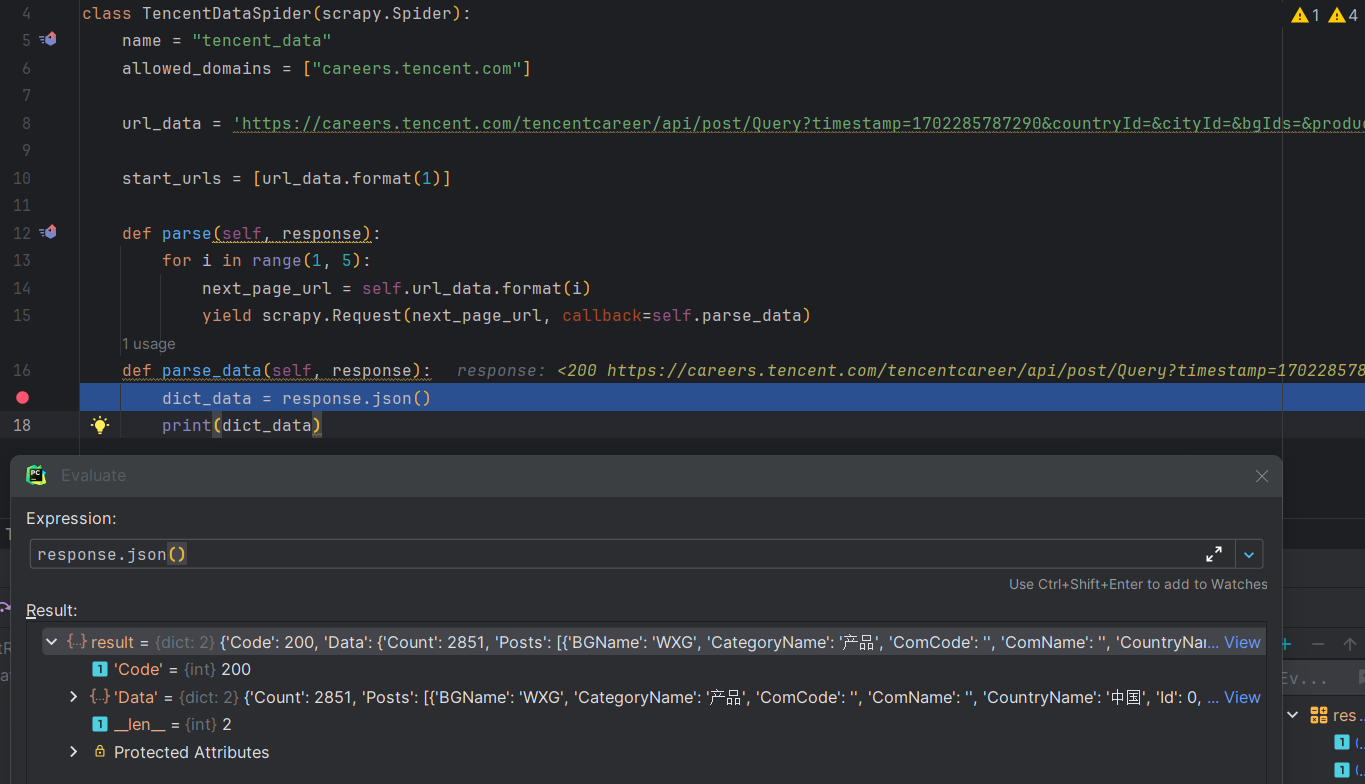 scrapy.Item。在Scrapy中,Item是用来收集从网页提取的数据的简单容器。 BaiduItem类将被用来存储从百度图片搜索结果中提取的数据。BaiduItem类中定义了一个字段img_data。scrapy.Field()是Scrapy用来定义Item字段的特殊容器,用于存储从网页中提取的数据。- 在这个例子中,