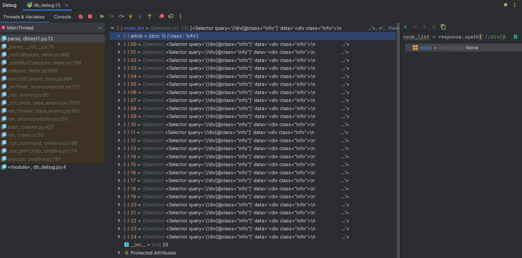 - 在Scrapy中,Twisted用于处理网络请求。当Scrapy发出一个请求并等待服务器响应时,它不会阻塞整个爬虫的进程。相反,Scrapy可以利用这段时间执行其他任务,如处理已经收到的数据或发出更多的网络请求。