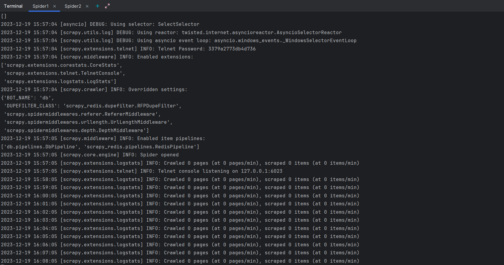 因为抛出了DontCloseSpider异常,所以当触发spider_idle信号的时候整个爬虫也不会停止。
